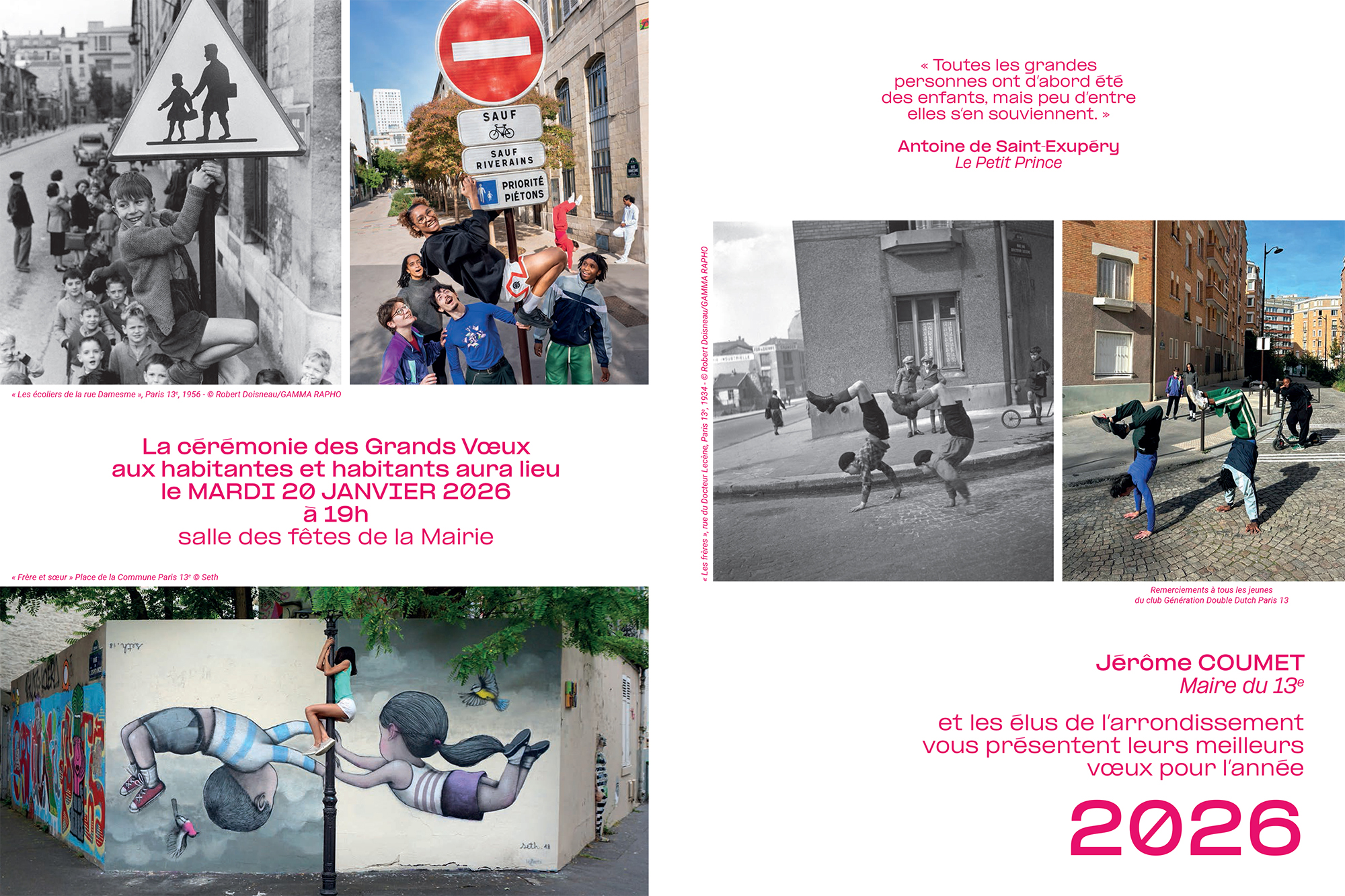 Jérôme Coumet, Maire du 13ᵉ, et les élus de l’arrondissement ont le plaisir de vous inviter à la cérémonie des Grands Vœux, qui se déroulera le mardi 20 janvier à 19h en salle des fêtes de la Mairie du 13ᵉ.
