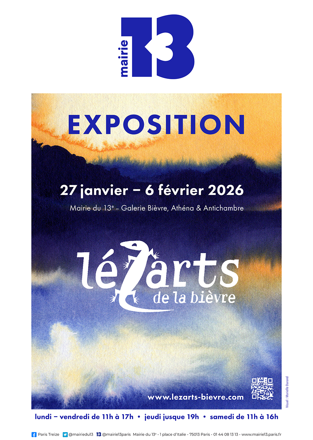 Du 27 janvier au 6 février 2026, la Mairie du 13ᵉ vous proposait une exposition collective des Lézarts de la Bièvre dans les Galeries Athéna, Bièvre et l'Antichambre.