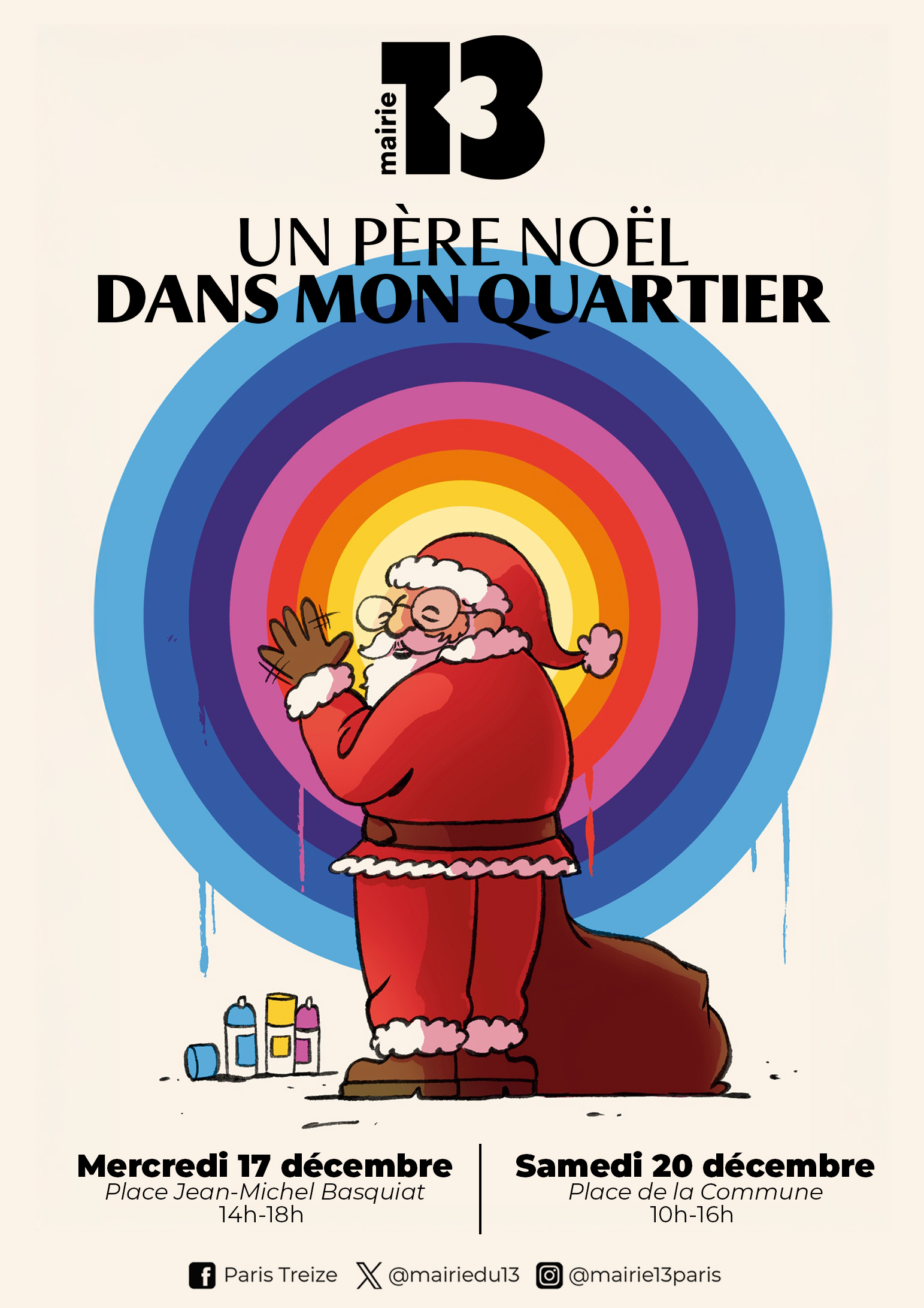 Les 17 et 20 décembre 2025, le Père Noël sera de passage dans le 13ᵉ comme chaque année afin de repérer les cheminées et les fenêtres par lesquelles il passera dans la nuit du 24 décembre avec ses lutins.